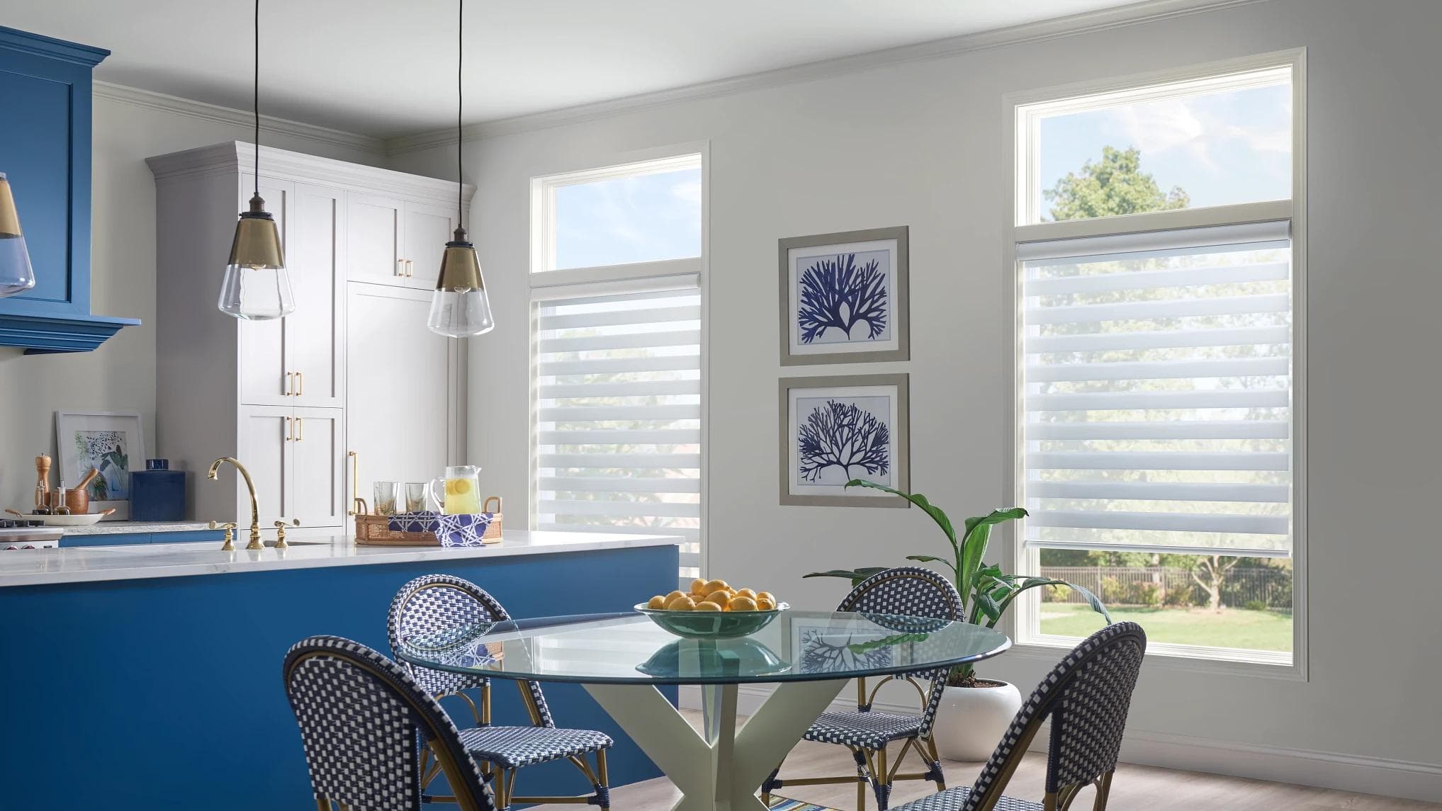 Passons maintenant à la partie la plus amusante ! Nous espérons que vous avez réfléchi aux questions précédentes et que vous avez une idée de l'utilité des habillages de fenêtre. Quels que soient vos souhaits en matière de style de cuisine, Alta est prêt à vous aider. Peut-être recherchez-vous un style élégant et moderne ou coloré mais traditionnel. Vous pensez à une cuisine de style côtier ou campagnard ? Alta propose une grande variété de couleurs, de motifs, de textures et de produits, et nos spécialistes sont prêts à vous aider en vous donnant une foule de suggestions et de conseils utiles. Chez Alta, nous voulons vous aider à créer les habillages de fenêtre pour la cuisine parfaits pour vous et votre maison. Voici quelques possibilités de style que vous pourriez envisager pour votre cuisine :