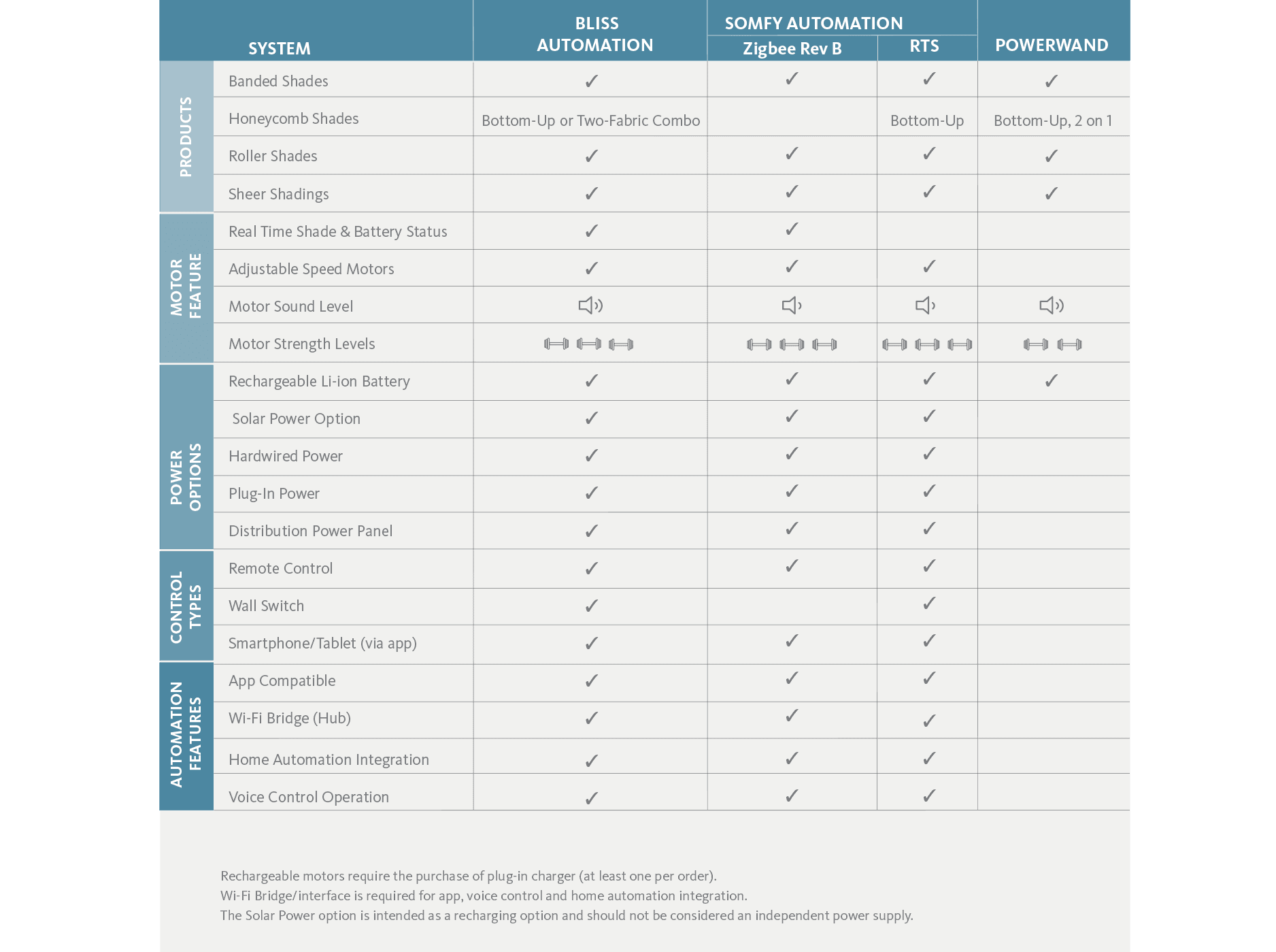 Profitez des avantages de l’aisance délibérée ! Découvrez une large offre d'options de moteur et de puissance pour les stores étroits et plus larges. Chacun d'entre eux est conçu pour s'intégrer parfaitement aux réseaux domotiques avec une automatisation qui peut être gérée via une application ou une commande vocale.