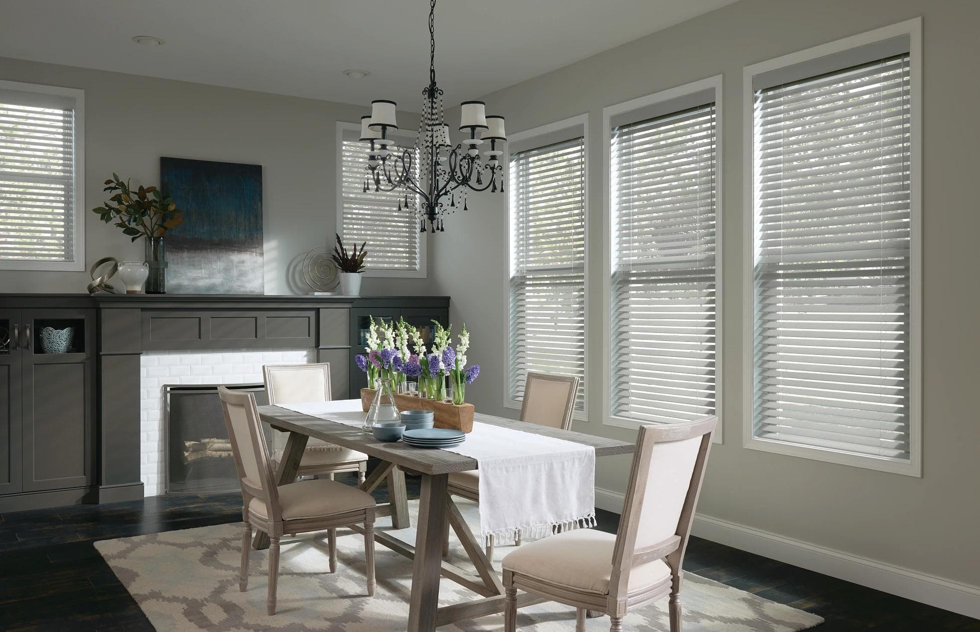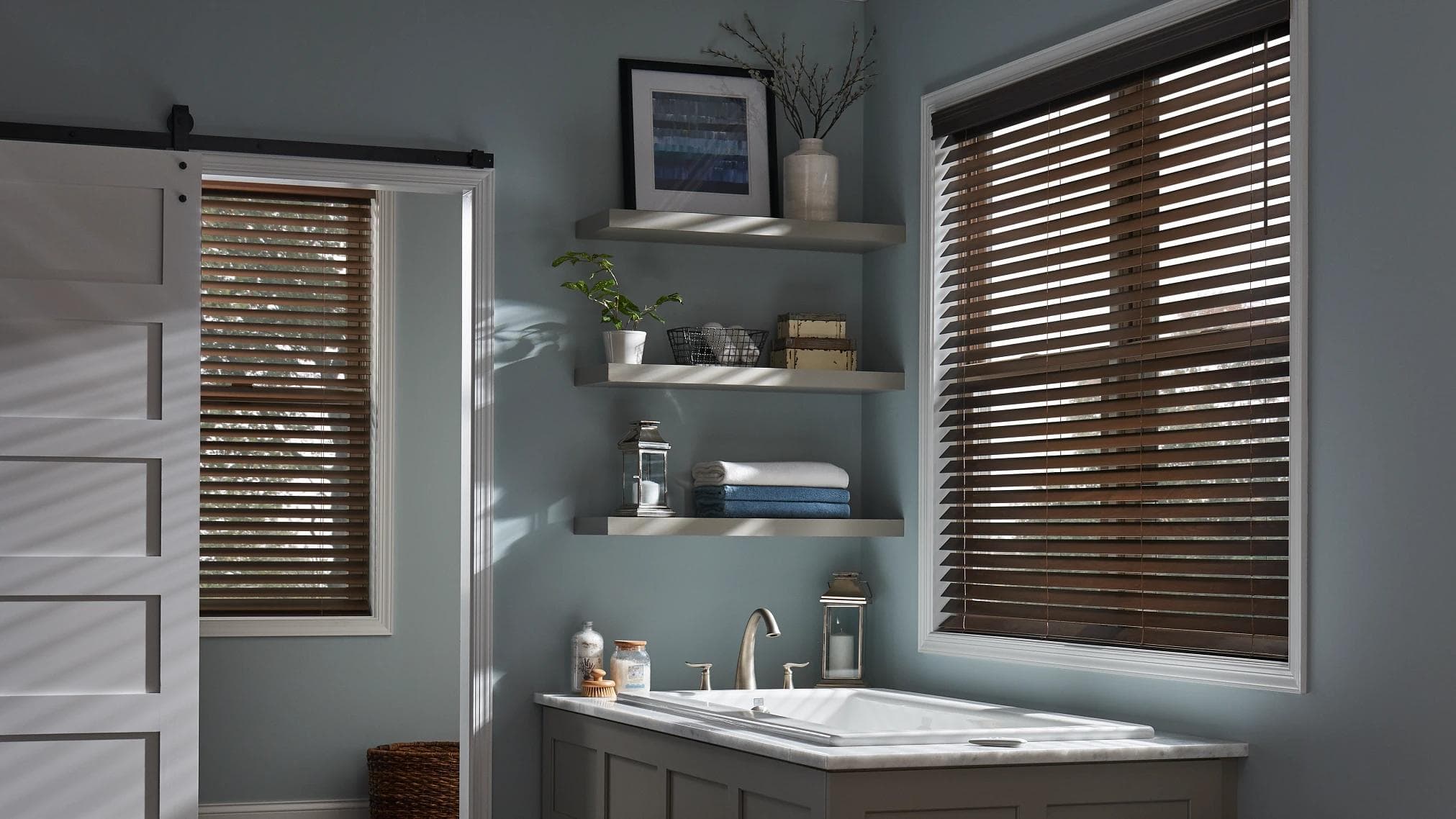 Wood window blinds are a popular window treatment because they blend with almost any décor while offering richness, texture, and effective light blocking. Naturally energy-friendly, our premium woods are chosen for their high-end appearance and equally high performance. With cordless options and a variety of valances to finish the look, find the perfect wooden blinds to spruce up any room.